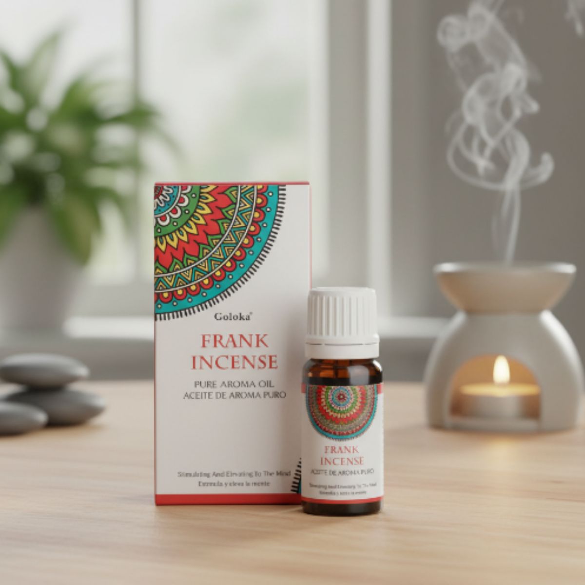 ✦ El Aceite Aromático Frank Incense de Goloka es ideal para quienes buscan un aroma sagrado y profundo que purifique el espacio, eleve la energía y acompañe momentos de conexión espiritual y calma interior.