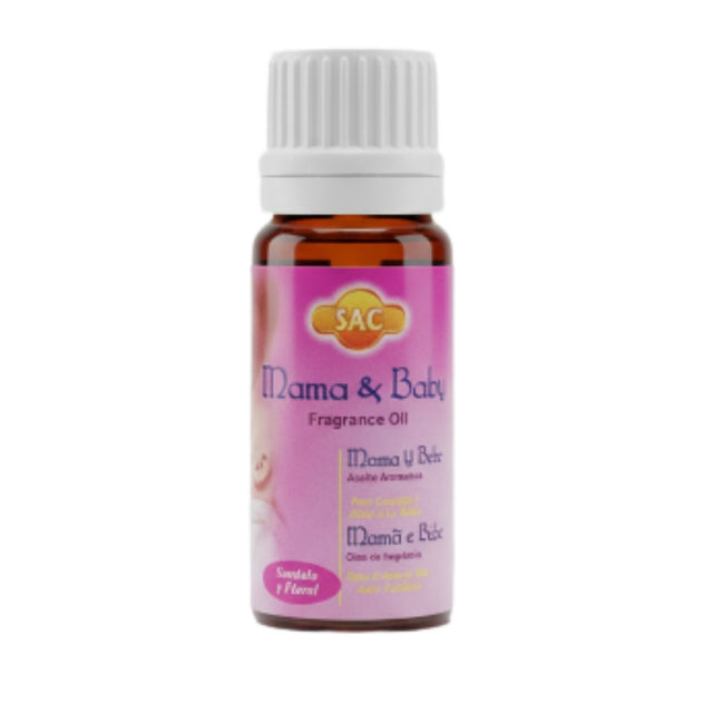 El Aceite Aromático Mamá Bebé  de SAC es una fragancia suave, fresca y tierna diseñada para transmitir calma, armonía y protección. Su aroma delicado envuelve los espacios con serenidad, creando un ambiente amoroso ideal para acompañar momentos de descanso y conexión especial entre madre e hijo.