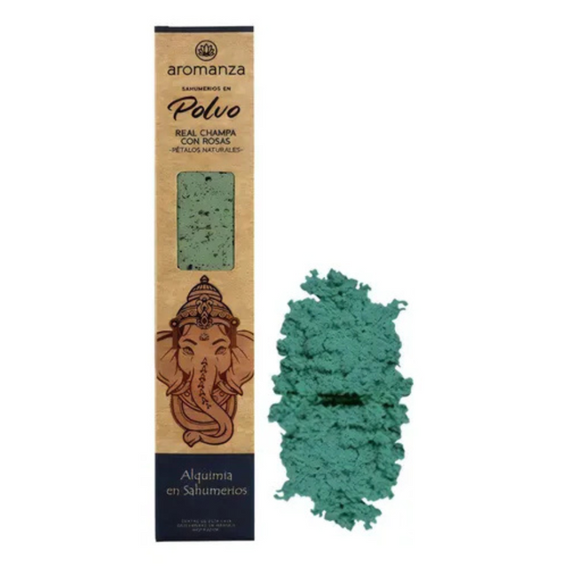 Eleva la vibración de tus espacios con el Sahumerio en Polvo Real Champa y Rosas de Aromanza. Con su formato artesanal e intenso, este sahumerio de aromas naturales extra fuertes transforma la energía de tu hogar, llenándolo de dulzura floral y espiritualidad profunda.