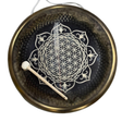En el centro presenta un diseño de Mándala, símbolo de orden, equilibrio y unidad. Esta geometría actúa como punto de enfoque visual y energético, acompañando la vibración del gong y facilitando procesos de alineación, meditación profunda y coherencia interior.