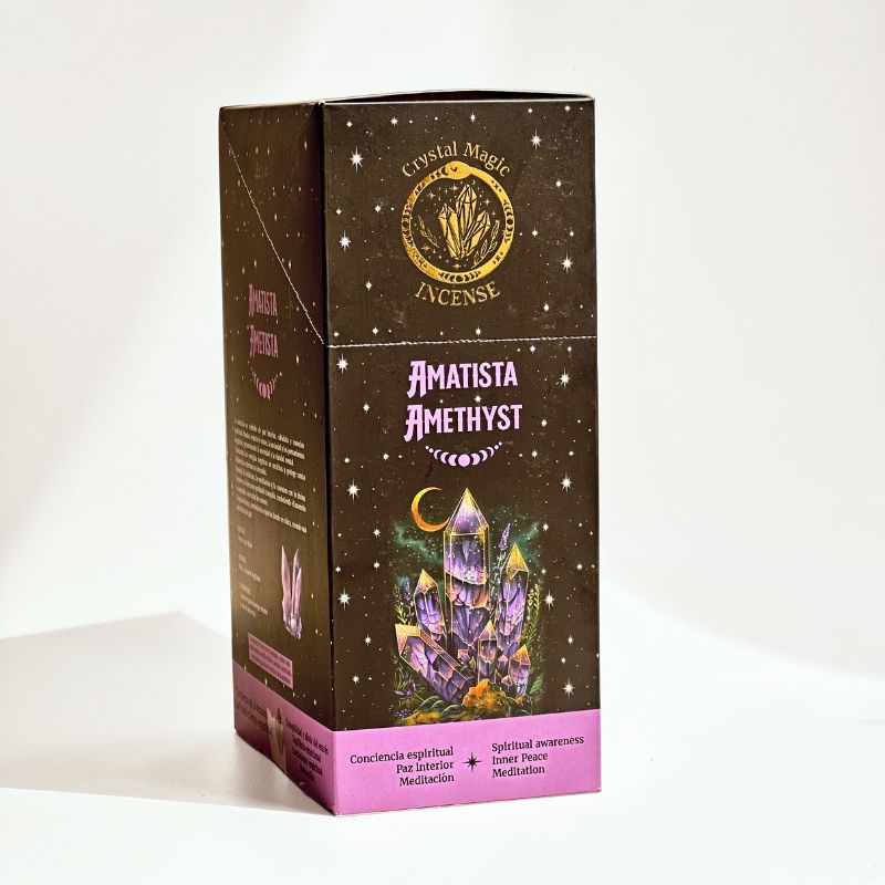 El Incienso con Piedras de Amatista pertenece a la línea Crystal Magic Tribal Soul de Hari Darshan, una colección que combina la energía espiritual de los cristales con fragancias naturales que elevan la mente y purifican el alma. Cada incienso está inspirado en un mineral y contiene piedras auténticas que pueden conservarse como amuleto energético.