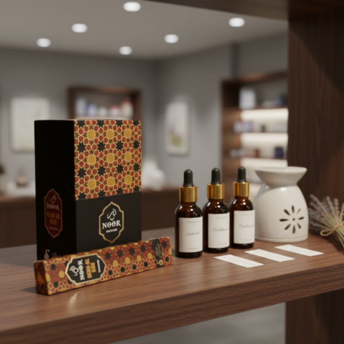 Noor Incense – Incienso Dehn-Al Oud, una fragancia intensa y espiritual que despierta los sentidos, purifica el ambiente y envuelve tus espacios en un aura de poder, misticismo y elegancia atemporal.