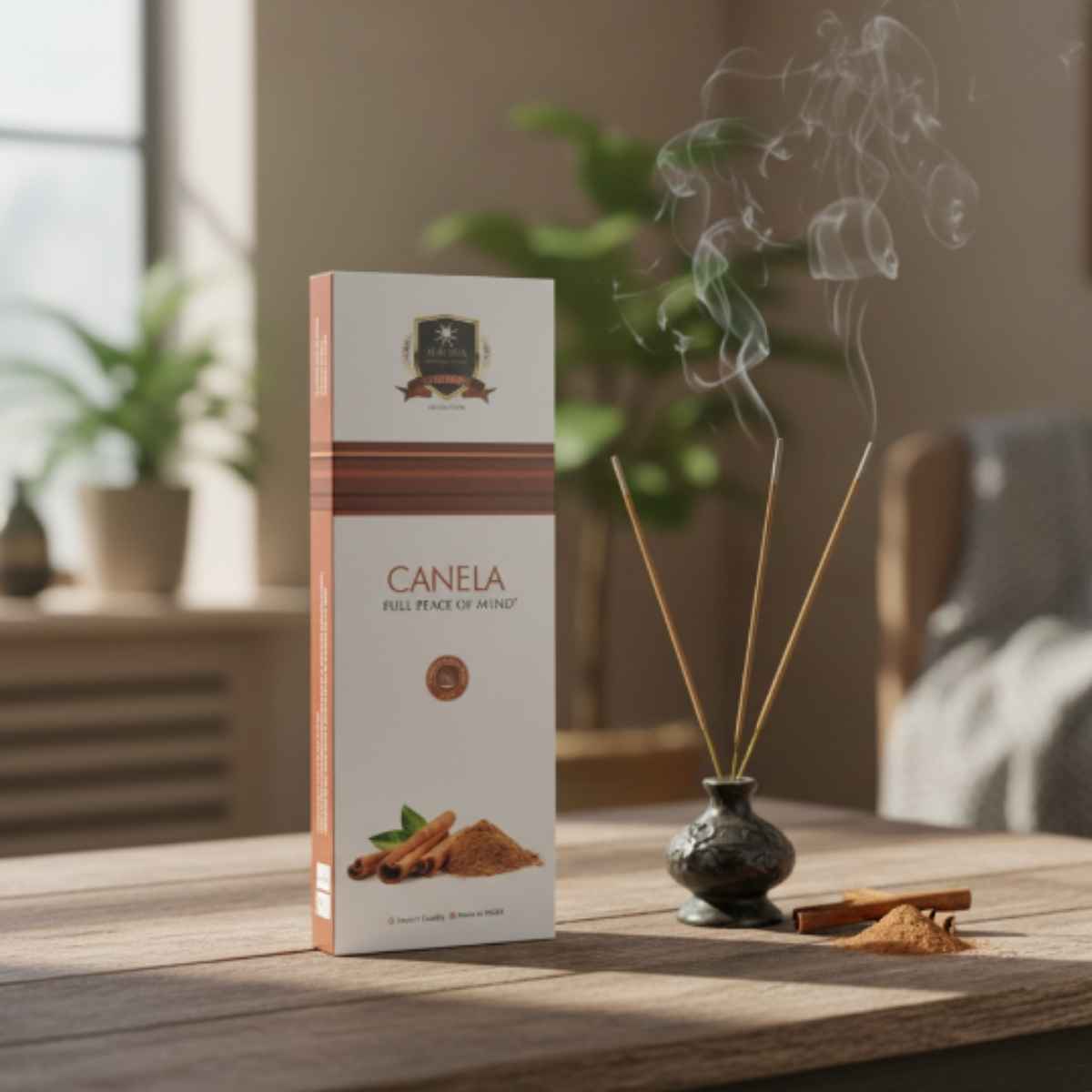 Utilizar en un porta incienso adecuado y sobre superficie resistente al calor. No dejar encendido sin supervisión. Mantener fuera del alcance de niños y mascotas.