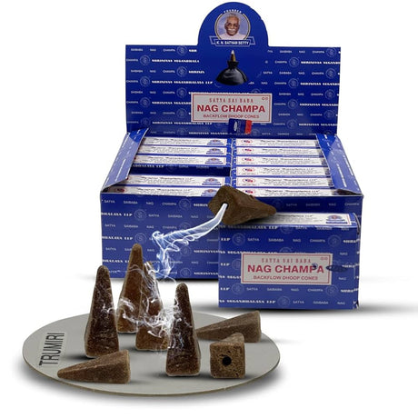 El incienso en cono es una forma compacta y concentrada de incienso, hecho de una mezcla de ingredientes aromáticos naturales como hierbas, resinas, aceites esenciales y madera en polvo, que se combinan y moldean en una forma cónica. A diferencia del incienso en varilla, el incienso en cono no tiene un núcleo de madera, lo que permite que toda la superficie del cono se queme y libere su fragancia.