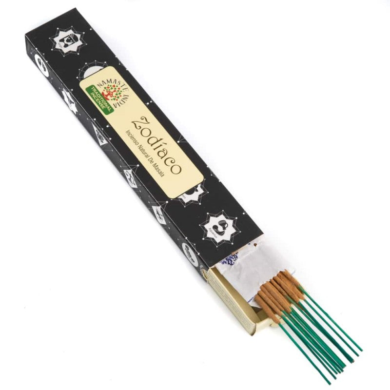 Namaste India – Incienso Zodiac, una fragancia cósmica y espiritual que conecta con la energía de los astros, equilibrando tus emociones y llenando tus espacios de armonía, intuición y equilibrio universal.