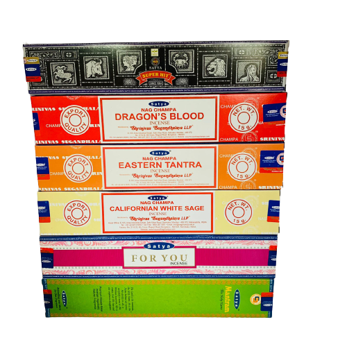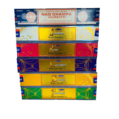 Cada pack incluye 12 aromas distintos de la colección Satya (pueden variar entre los más de 60 disponibles), siempre manteniendo como base el icónico Nag Champa, el incienso más famoso y aclamado del mundo. Sus fragancias transmiten armonía, limpieza energética y bienestar espiritual, adaptándose a cada momento del día.