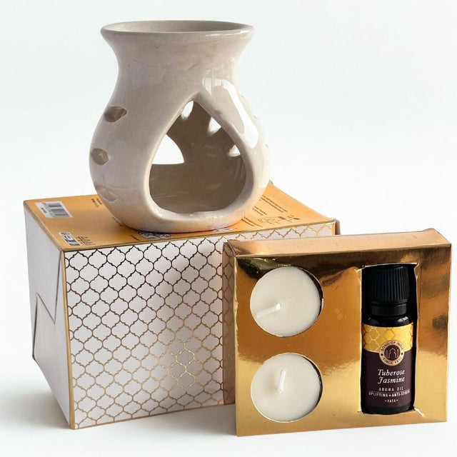 Set Difusor de Cerámica Ayurveda Flor de Jazmín