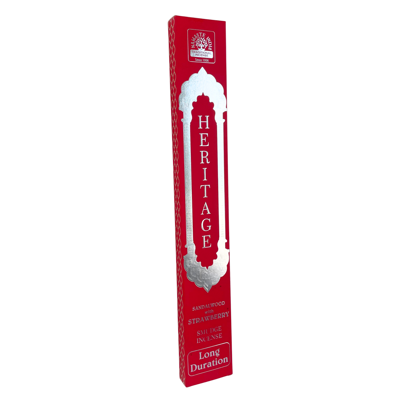 Namaste India – Incienso Heritage Sándalo con Frutilla, una fragancia que combina la serenidad oriental con la dulzura de los frutos rojos, llenando tus espacios de armonía, alegría y amor.