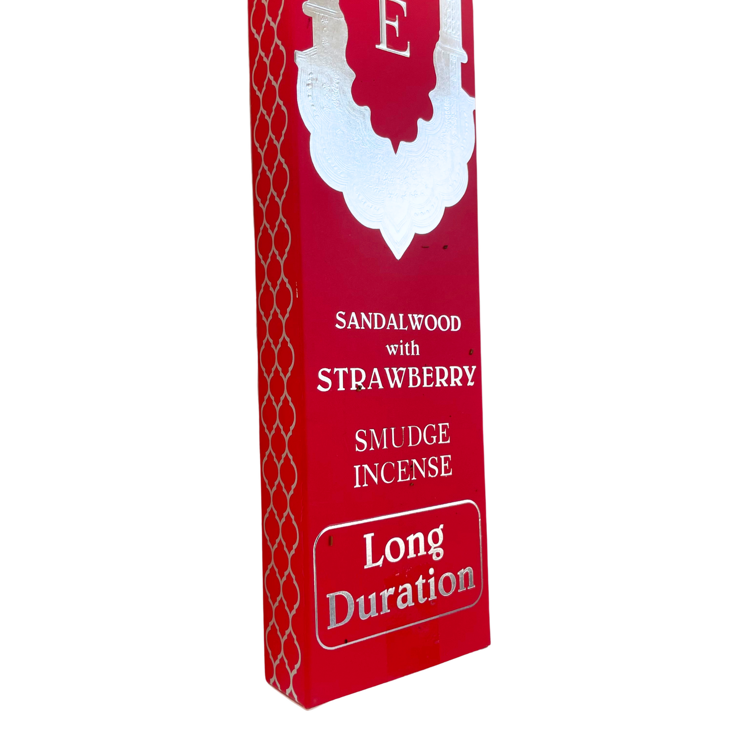 – Hecho a mano en India con escamas de sándalo y esencias naturales de frutilla.