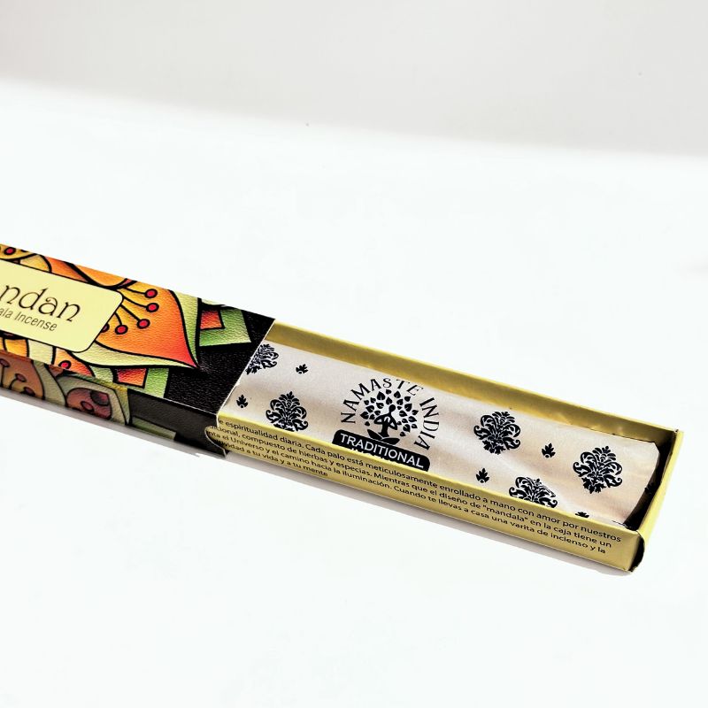 El Incienso Chandan Natural de Namaste India irradia la esencia pura del sándalo, una de las fragancias más sagradas de la India. Su aroma milenario, utilizado en templos y rituales espirituales, eleva la energía, calma la mente y favorece la meditación profunda. Es ideal para quienes buscan conexión interior y serenidad en su espacio.