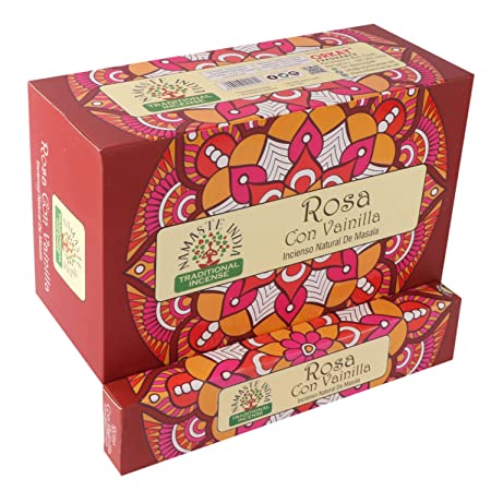 Namaste India – Incienso Rosa con Vainilla, una fragancia suave y envolvente que armoniza el corazón, relaja la mente y llena tus espacios de amor, serenidad y energía positiva.