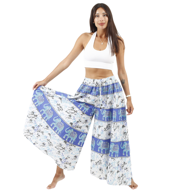 Confeccionado en 100% rayón, ofrece suavidad, frescura y una caída fluida que estiliza la figura. Su diseño palazzo de amplitud extrema lo convierte en una prenda ideal para quienes buscan destacar con estilo y autenticidad.