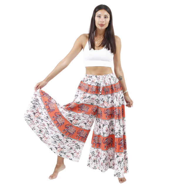 Confeccionado en 100% rayón, ofrece suavidad, frescura y una caída fluida que estiliza la figura. Su diseño palazzo de amplitud extrema lo convierte en una prenda ideal para quienes desean destacar con autenticidad y proyectar un estilo lleno de vitalidad.