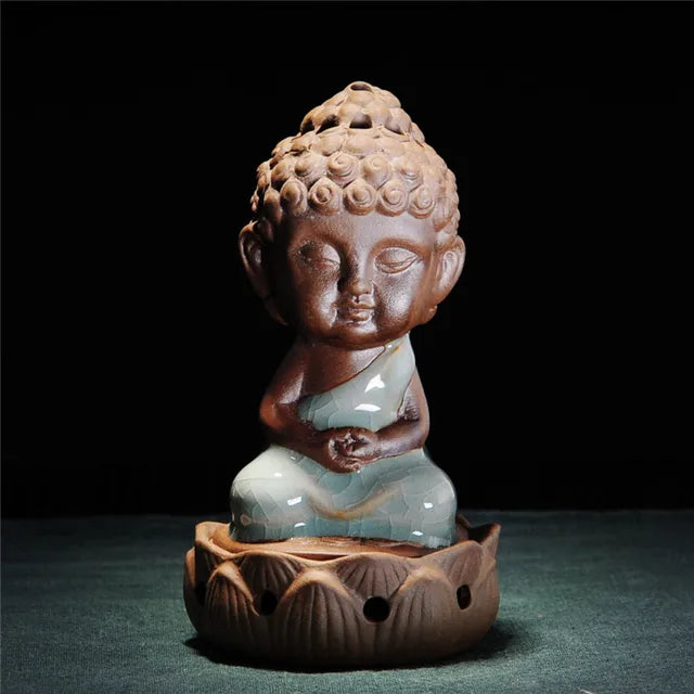 Un porta incienso práctico y decorativo para tus rituales. Este diseño en poliresina muestra a Buda en tono azul, símbolo de calma y protección espiritual. Ideal para usar con conos de incienso, recoge el humo y la ceniza de manera segura, mientras embellece tu hogar con un detalle místico.