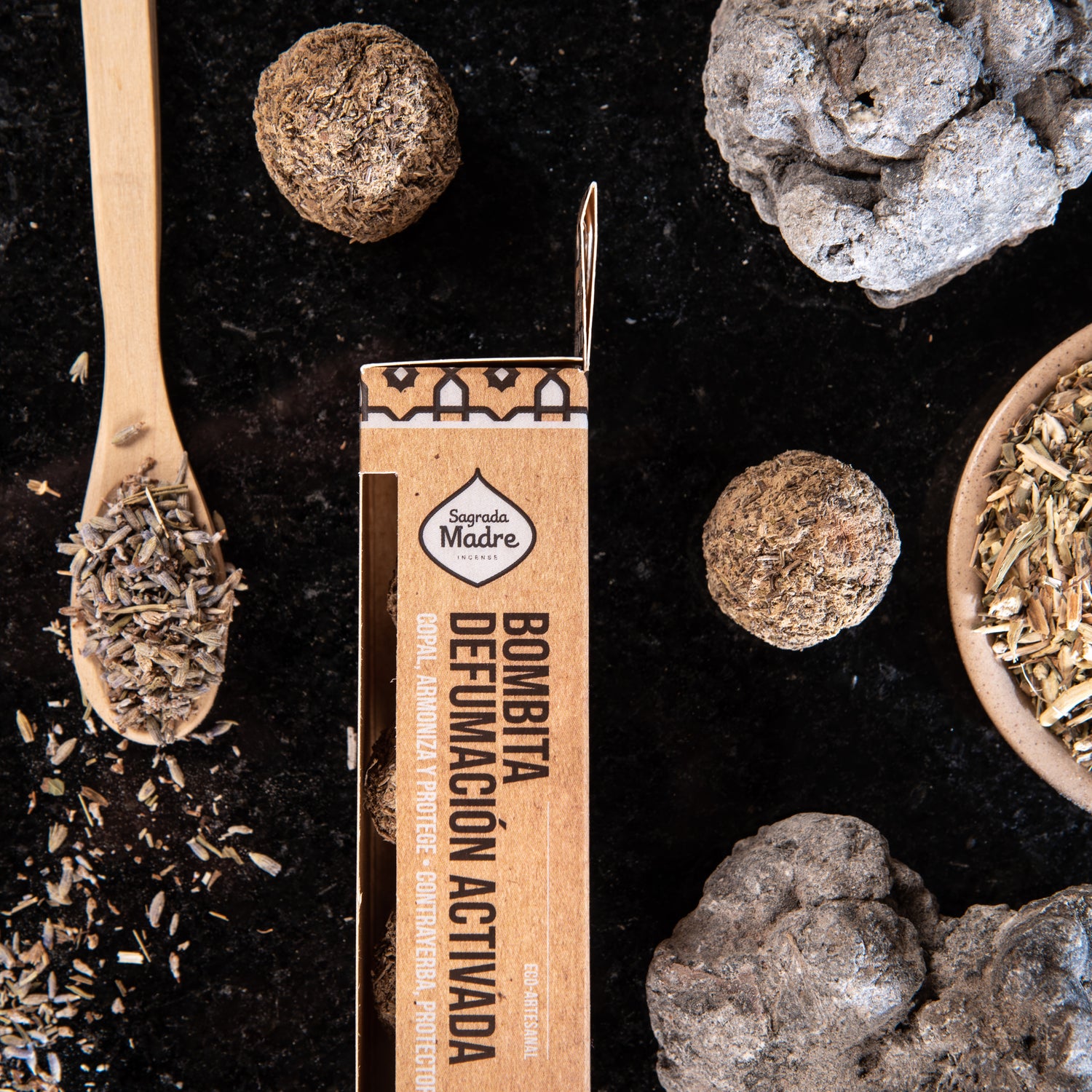 La Bomba Herbal 7 Hierbas Copal de Sagrada Madre es un sahumerio esférico que combina siete hierbas sagradas con copal natural, creando una poderosa herramienta de purificación y protección. Su humo eleva la vibración de los espacios, disipa energías densas y fortalece el campo energético.