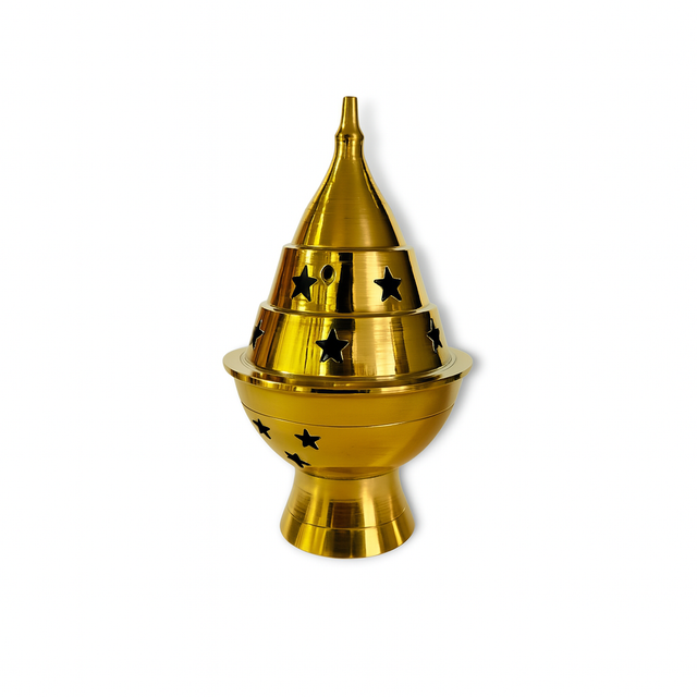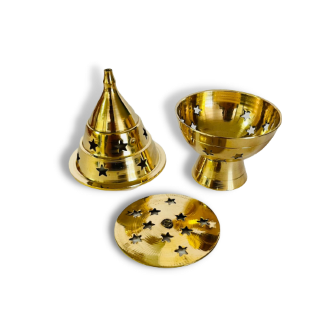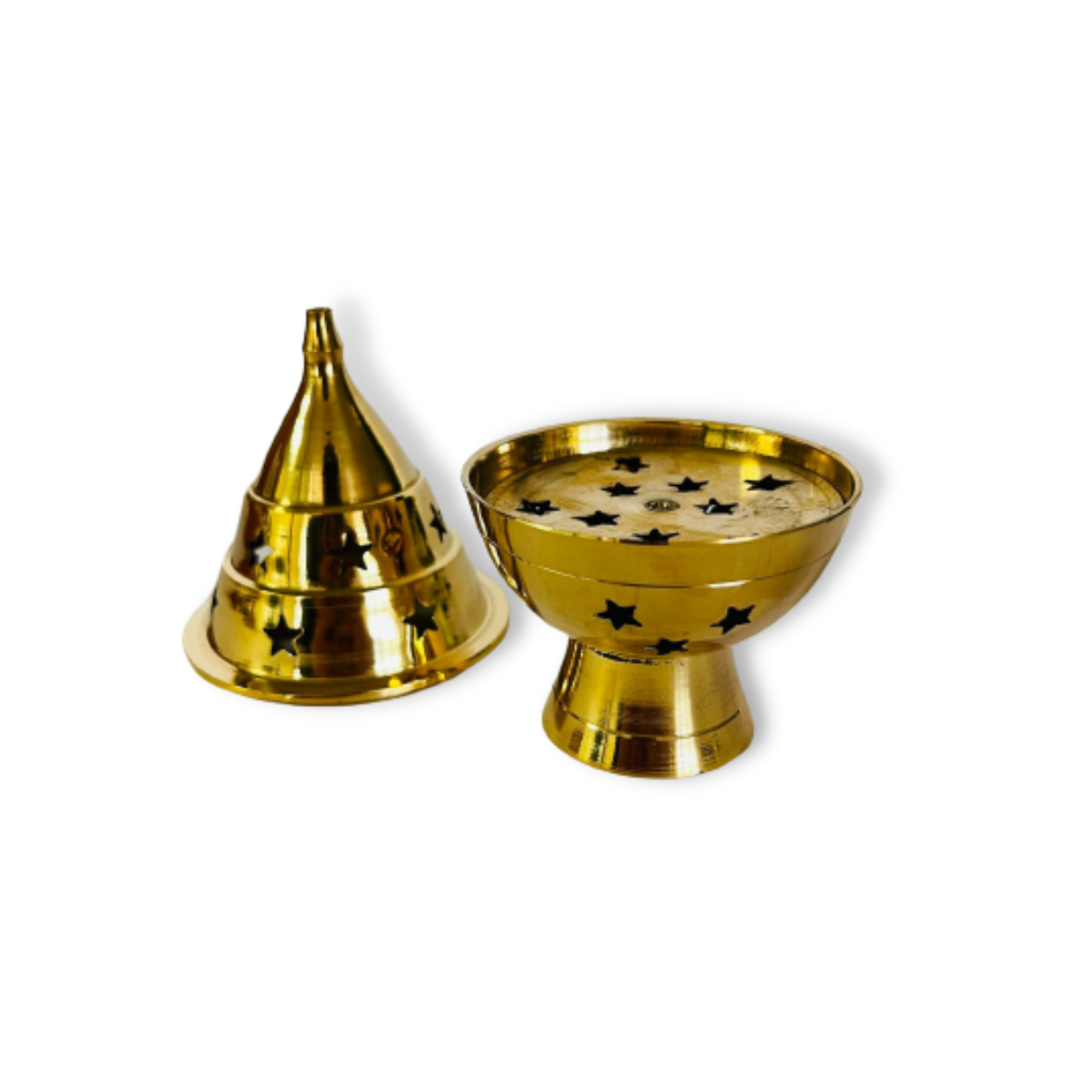 El Porta Incienso y Quemador de Bronce Estrella combina dos funciones en una sola pieza: soporte para varitas de incienso y quemador para resinas o copitas. Su estructura en bronce con un delicado diseño de estrella lo convierte en un accesorio decorativo y funcional, perfecto para ambientar y purificar tus espacios. Ideal para quienes buscan un elemento duradero, elegante y con un toque espiritual.