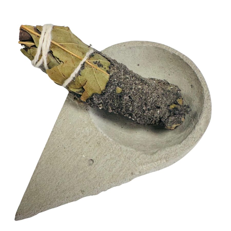 El Sahumador de Cemento Triangular Chico es un accesorio funcional y versátil, diseñado para potenciar tus rituales de limpieza y armonización energética. Su forma triangular permite colocar sahúmos, bombitas de defumación, carbones o inciensos de manera segura y uniforme, facilitando que el humo se eleve y purifique el ambiente.