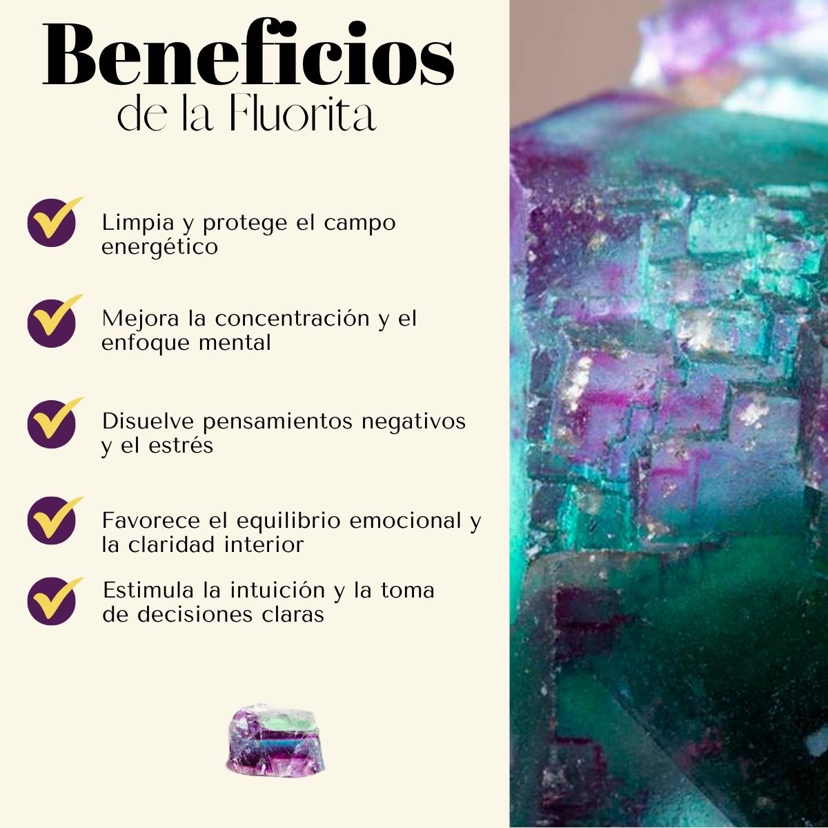La fluorita es conocida como la piedra de la claridad y la protección energética. Favorece la concentración, la organización y la toma de decisiones conscientes, mientras disipa la confusión mental y refuerza el campo áurico. Es ideal para equilibrar la energía entre mente y espíritu, especialmente en momentos de estrés, sobrecarga mental o fluctuaciones emocionales.