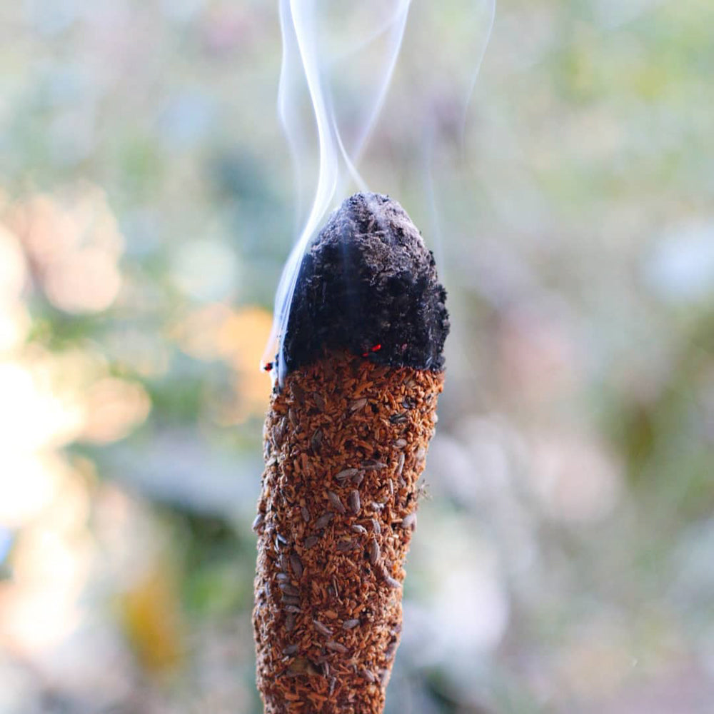 – Composición: Mezcla natural de 10 hierbas sagradas (palo santo, copal, mirra, salvia, lavanda, cedro, jarilla, menta, alcanfor e incienso).
