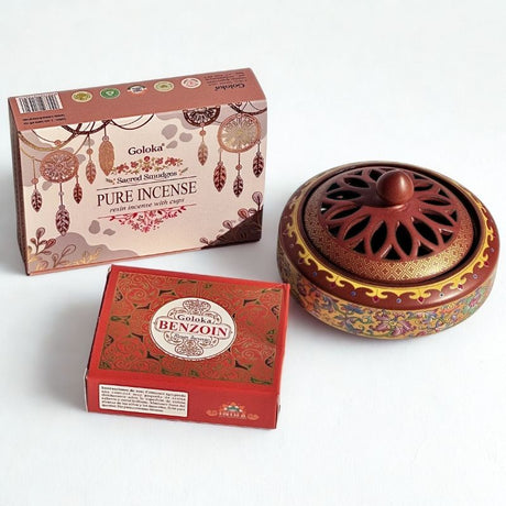 Las resinas aromáticas son sustancias naturales obtenidas de árboles y plantas que, al ser quemadas, liberan un aroma fragante. Estas resinas se han utilizado durante siglos en diversas culturas por sus propiedades aromáticas y ceremoniales. A diferencia de los inciensos en varilla o cono, que están compuestos de una mezcla de ingredientes, las resinas aromáticas son sustancias puras extraídas directamente de la savia de árboles como el olíbano, la mirra o el benjuí. Estas resinas se procesan y se convierten en pequeños trozos o polvo, que luego se utilizan para crear humo aromático al ser quemadas sobre un carbón encendido.