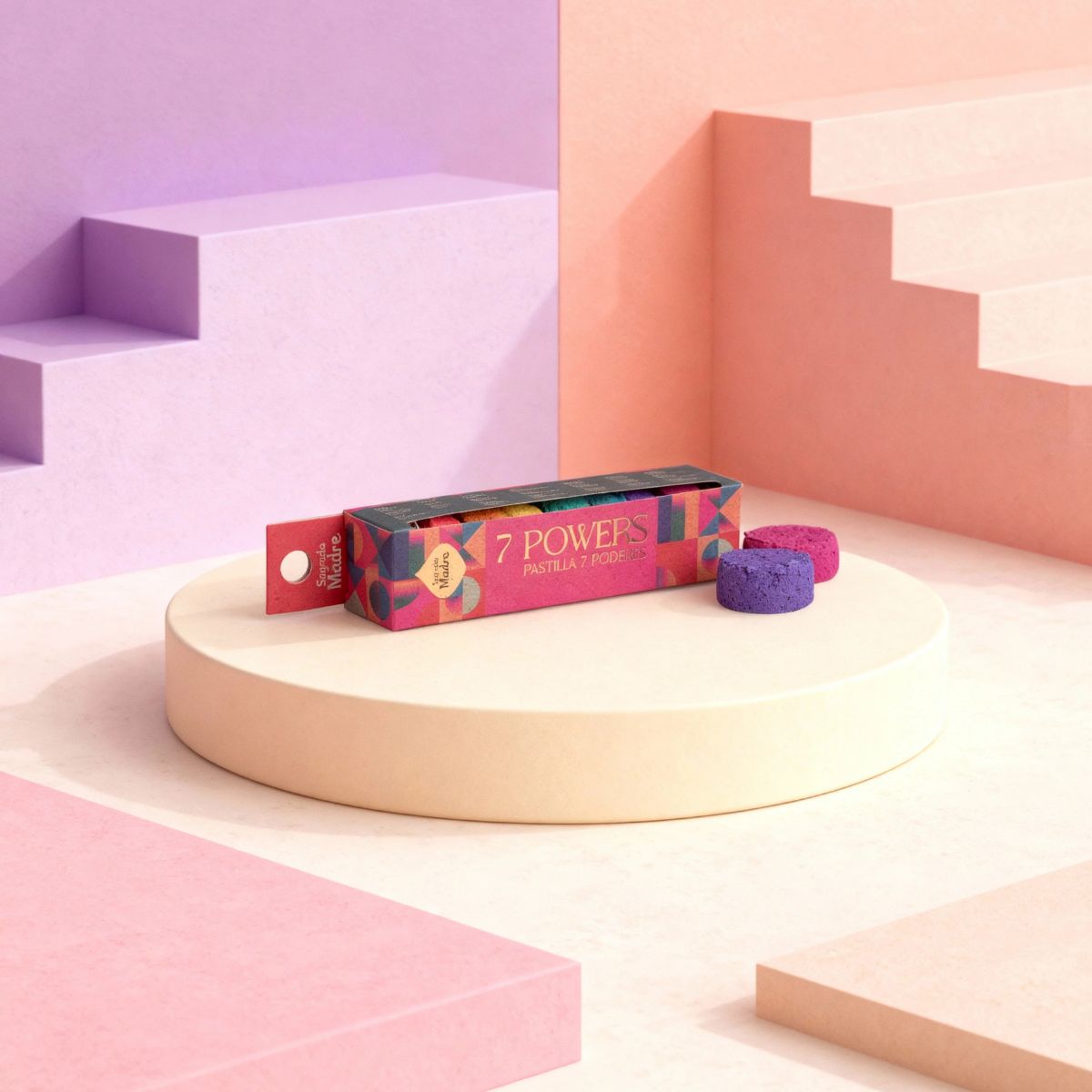 Las Pastillas de Limpieza 7 Poderes son pastillas para sahumar especialmente creadas para realizar limpiezas energéticas intensas y “resetear” el ambiente cuando sientes pesadez, cansancio o carga acumulada. Su humo potente ayuda a renovar la energía del espacio y restaurar una sensación de protección y liviandad.