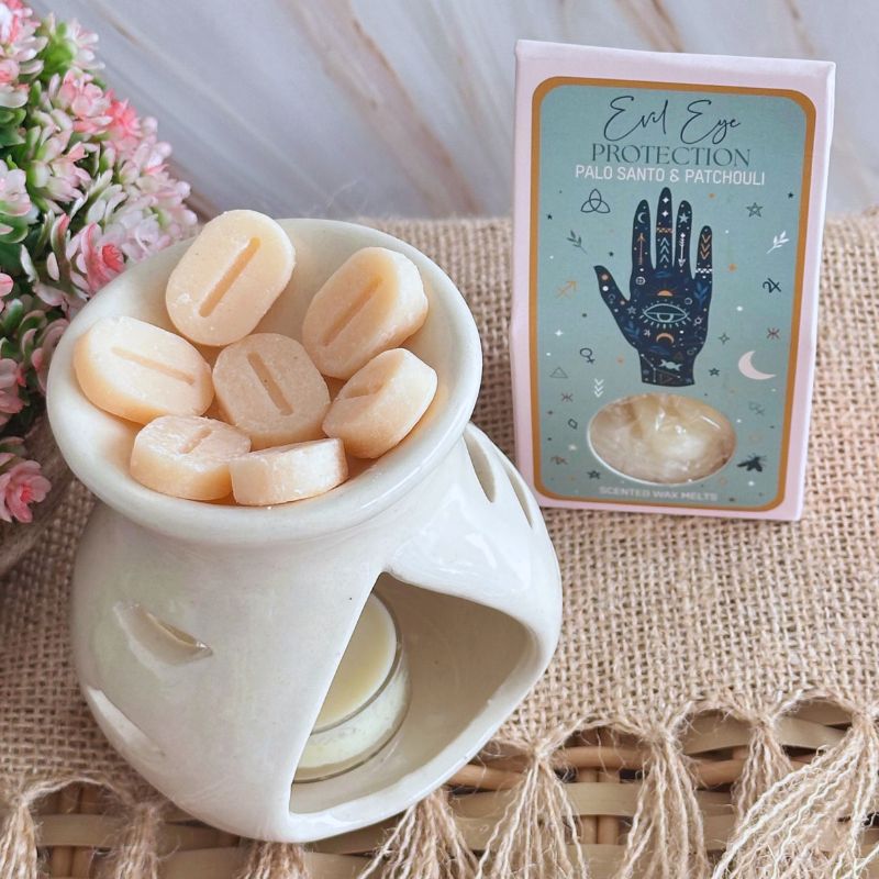 La Cera Aromática Protección está elaborada con cera de soya natural y aceites esenciales, libre de toxinas y de origen vegetal. Diseñada para usarse en difusores o quemadores, libera lentamente una fragancia mística que transforma cualquier espacio en un refugio de calma, conexión y bienestar.