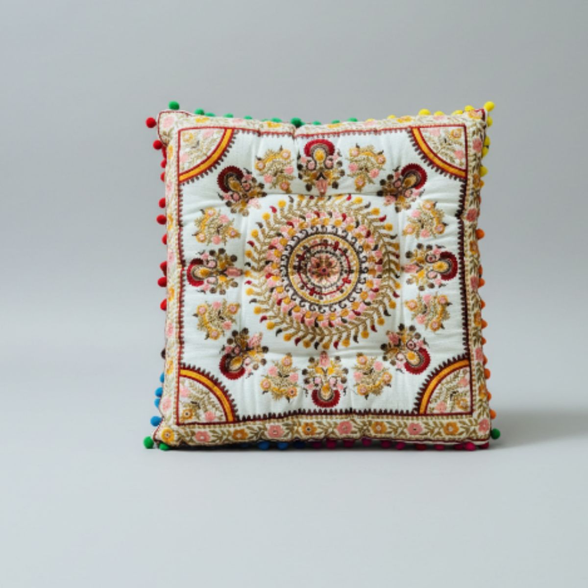 El Cojín de Suelo de la India es una auténtica joya de decoración, con exquisitos detalles bordados a mano en hilo que realzan su belleza única. Fabricado con algodón de alta calidad, este cojín no solo es ideal para meditar, sino también para embellecer tus espacios favoritos.