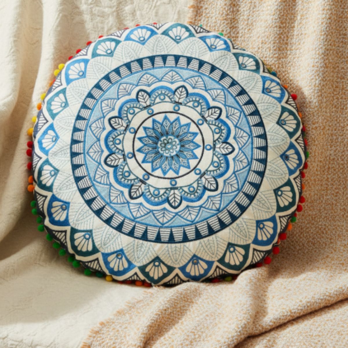 Cojin Azul Indio Redondo Grande