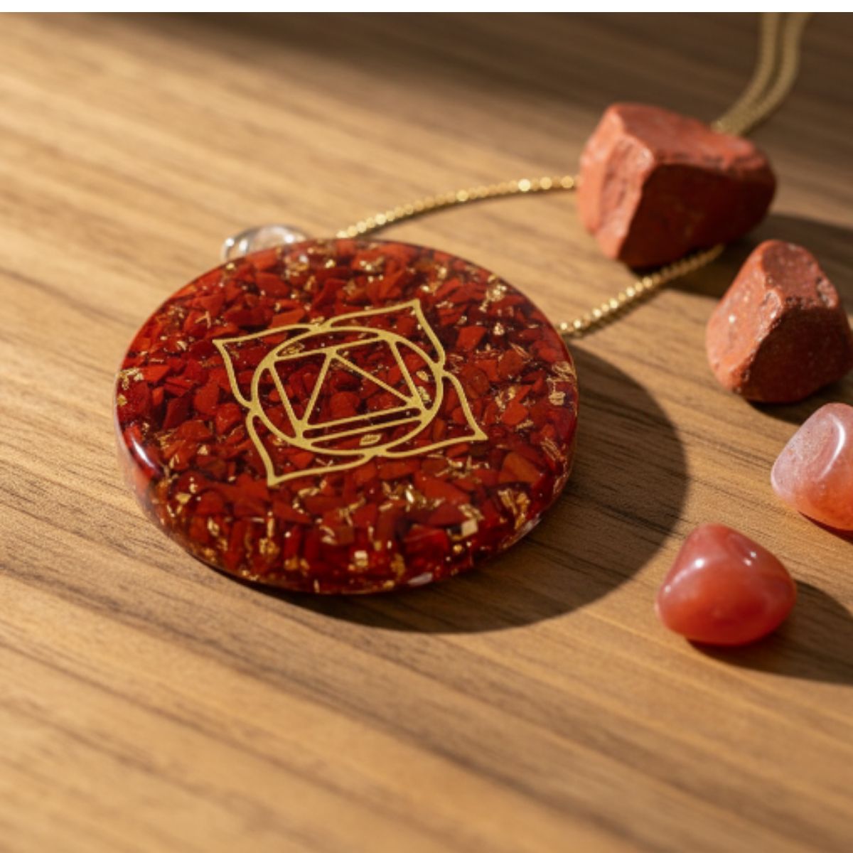 ✦ El Colgante Orgon Muladhara es ideal para quienes buscan reforzar su base energética, sentir mayor estabilidad y avanzar con seguridad en su camino personal.