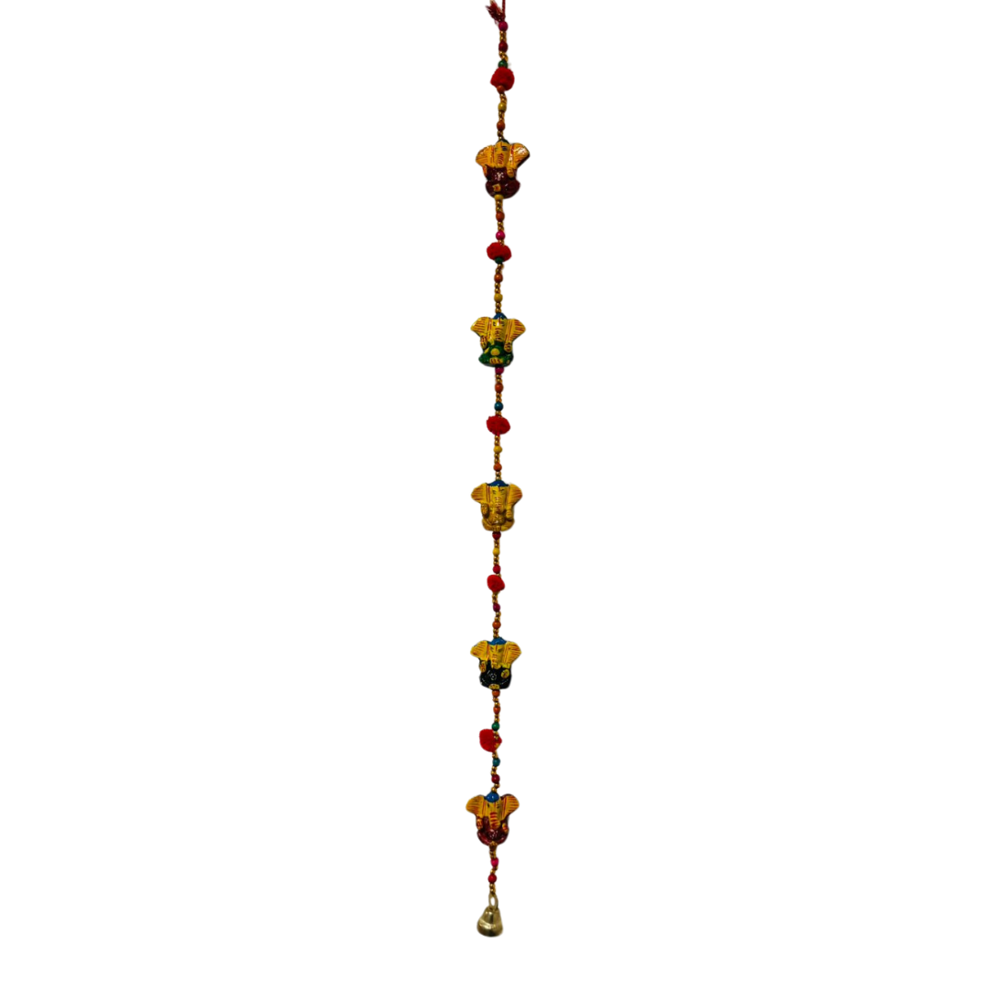 Cada colgante es único, con ligeras variaciones en color y detalles que reflejan su elaboración artesanal. Colócalo en un espacio donde reciba luz natural y corriente de aire, para activar su movimiento y permitir que la energía protectora y próspera de Ganesha fluya por todo tu hogar.