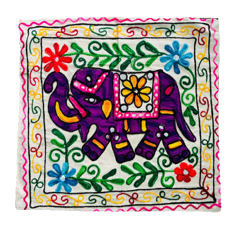 Funda de Cojín Bordado a mano - Elephant Purple - Green está agotado y se enviará tan pronto como vuelva a estar disponible.