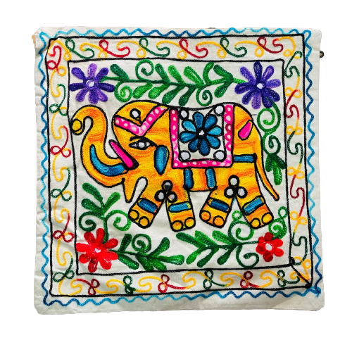 Cada funda es confeccionada artesanalmente en India, utilizando técnicas tradicionales de bordado manual que aportan textura, color y autenticidad.