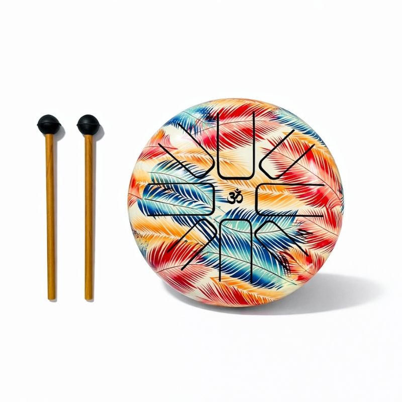 Su sonido metálico, armónico y profundo genera una vibración capaz de llenar el ambiente con melodías suaves y meditativas. Cada golpe produce notas que invitan a la relajación, la introspección y la calma, convirtiéndolo en un acompañamiento ideal para rituales, prácticas de sanación sonora o simplemente para disfrutar de su musicalidad en momentos de contemplación.