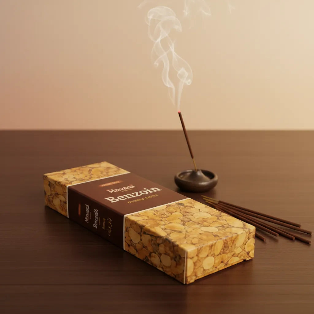 El Incienso Benzoin Mavana destaca por su fragancia cálida y resinosa, conocida por su aroma dulce y profundo que crea una atmósfera acogedora y armoniosa en los espacios.
