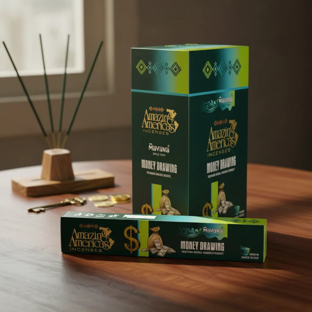 Mavana – Incienso Atrae Dinero, una fragancia cálida y magnética que activa la abundancia, limpia la energía del entorno y llena tus espacios de prosperidad, éxito y buena suerte.