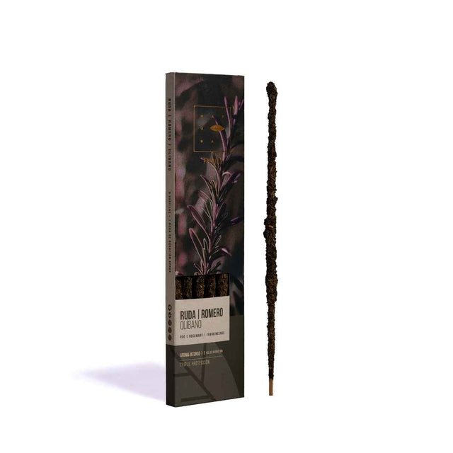 La unión de ruda, romero y olíbano trabaja sobre la limpieza energética intensa, la protección y la activación del ambiente. La ruda es conocida por su poder de corte y resguardo, el romero aporta claridad y vitalidad, y el olíbano eleva y armoniza la energía del espacio.
