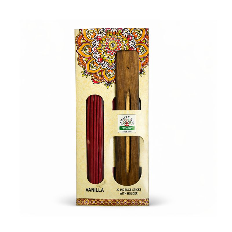 ✦ El Set Incienso Vainilla Namaste India es ideal para regalar bienestar, calidez y una experiencia sensorial reconfortante, perfecta para quienes valoran los aromas dulces y los pequeños rituales cotidianos.