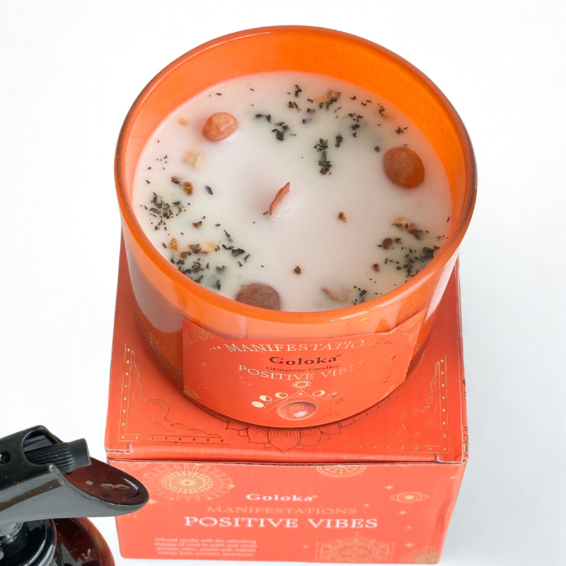 – Vela de Menta con Piedra Solar: Aroma refrescante que eleva el ánimo, vibra luminosa y sonido tipo chimenea que relaja instantáneamente. La piedra solar activa alegría y energía positiva.